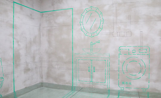 裝修過程中,水平線是一切施工的基準線,綠港裝飾配有專業紅外線放線儀器,標注水平線,在施工前,結合設計師施工圖紙和客戶要求,1:1模擬將墻體格局改造,物品擺放位置,水電路改造一次性安排到位,局部區域配以實物模擬擺放。
