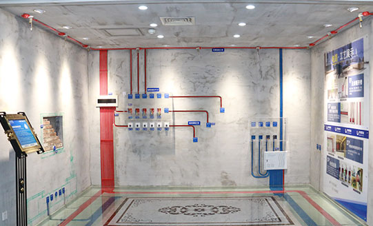 從原始水管進入室內30-50厘米以內進行水路改造,解決了開發商所布置管不達標的隱患,上水管進入衛生間后,墻上走管,水管距離地面30厘米左右處入墻。冷熱水管間距10厘米左右,避免冷熱水太近出現冷凝水,水路改造完畢必須進行打壓測試確保管件無漏點。